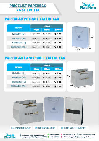 cetak full color tali kertas putih kraft putih 150gram